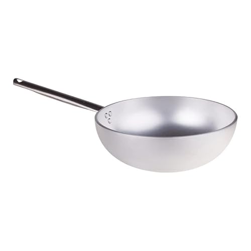 Pentole Agnelli ALMR1111W32 Wok Radiante con Fondo Svasato, Alluminio, Argento, 32 cm