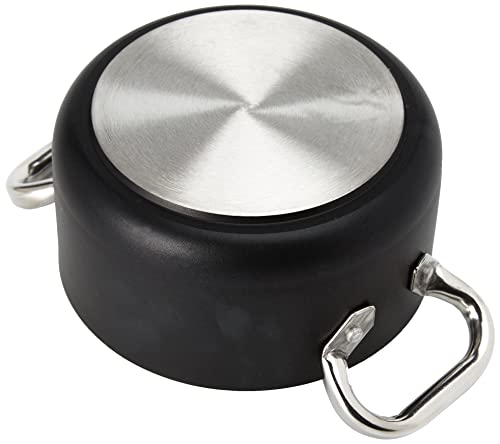 Pentole Agnelli ALSA2104SSPI16 Alblack Casseruola Alta in Alluminio, Spessore 5 mm, Fondo Induzione da 10 mm, con 2 Manici in Acciaio Inossidabile, 16 cm, Nero