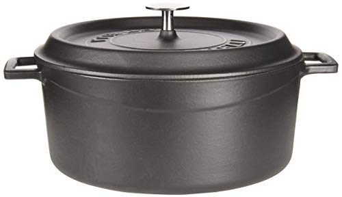 Pentole Agnelli COGHSRP10424M Slowcook Casseruola con Maniglie e Coperchio, Ghisa, Nero Opaco, 4.5 L - 24cm