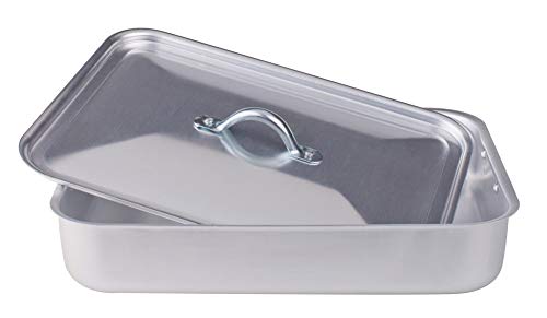 Pentole Agnelli FAMA50BIS26 Rostiera Rettangolare con Coperchio, Angoli Tondi, in Alluminio BLTF, Finitura Opaca, Argento, 26 x 20 cm
