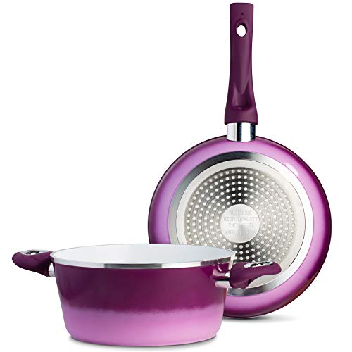 Chef's Star - Set di pentole e padelle antiaderenti in alluminio di grado professionale, 9 pezzi, colore: viola
