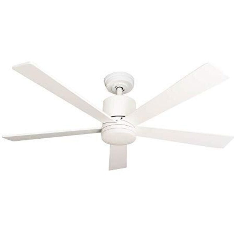 160 - 240 Volt / 50 - 60 Hz diametro: 132 cm 5 ali bianche, alloggiamento bianco. Capacità massima dell'aria 16.310 m³/h (corrisponde ad una potenza di 429 m³/h) regolabile in 6 passi giri al minuto 70 / 100 / 130 / 130 / 160 / 190 / 225 Watt 3 / 4,5 / 7,5 / 14,5 / 22 / 38 Distanza tra le pale delle ali del soffitto 31,7 cm max. inclinazione del soffitto 15° funzionamento estivo e invernale (mandata e ritorno)compreso il telecomando a infrarossi. Controllo della luce, della velocità e della direzione del movimento tramite telecomando. Peso ca. 6,8 kg Dati Sorgente luminosa flusso luminoso: 2200 lumen, colore della luce: 3000 K vita nominale media: 30.000 hWatt: 22. Classe di efficienza energetica F dimmerabile.