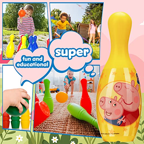 Peppa Pig 6 Birilli Bowling Bambini 1 Palla Set da Bowling con Personaggi Giochi da Esterno Bambini Bambine Giochi da Giardino e da Interno per Feste di Compleanno Giochi Bambini 3 Anni +