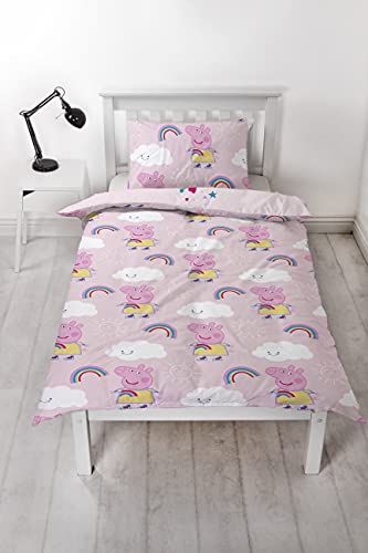 Peppa Pig Copripiumino singolo con licenza ufficiale | Reversibile 2 lati Storm Design con federa coordinata, in policotone, rosa