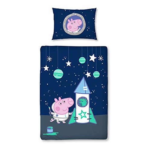 Peppa Pig - Copripiumino ufficiale Peppa George Pig, motivo Space Rocket Design, set di biancheria da letto e federa per bambini, colore: Blu
