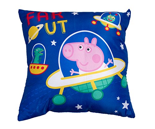 Peppa Pig George Square Pianeti Spazio Cuscino - Due Lati Kids Design Perfetto per Camera da Letto o della Sala Giochi, Poliestere, Blu, 30 x 30 x 8 cm