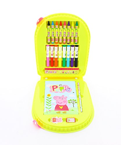 Include 8 penne coloranti lavabili, 8 pastelli Chunky, Paper Pad, righello, gomma, temperamatite e matita