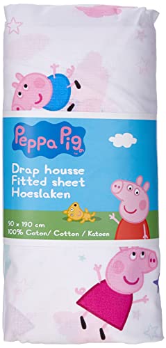 Peppa Pig - Lenzuolo con angoli, 100% cotone, 90 x 190 cm