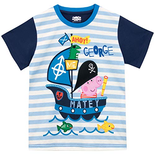 L'adorabile maglietta a strisce azzurre e bianche, vede ritratto il Pirata George che attraversa il mare Ahoy Matey!