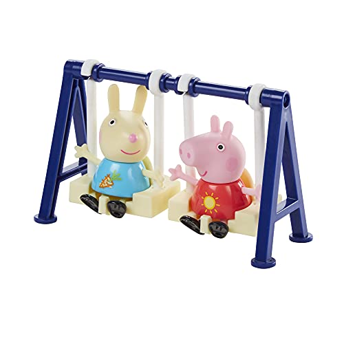 Giocare con il cucchiaio Poppa e Luisa: questi due amici amano giocare all'aperto. Il set da gioco contiene i personaggi di Peppa Pig e Luisa da 7,5 cm, nonché un altalena e un dondolo come accessorio