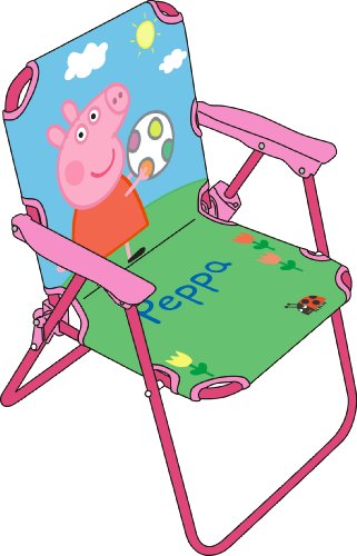 Molto bella sedia per bambini con licenza Peppa Pig. Pieghevole, si ripone e si trasporta facilmente senza essere ingombrante, ideale per il giardino o il campeggio ma adatto anche per l' interno. Dimensioni aperta: 53 x 32 x 38 cm (altezza x larghezza x profondità) Dimensioni piegate: 48,5 x 36,5 x 7,5 cm (Lunghezza x Larghezza x Altezza) Peso massimo: 30 kg materie: metallo e tessuti