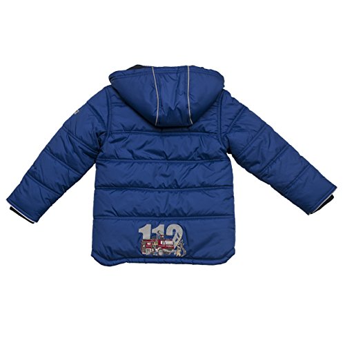 kuschelige Outdoorjacke in Daunenoptik, dick gefüttert, mit abnehmbarer Kapuze, reflektierenden Nähten an Kapuze und Ärmeln, aufwändiger Feuerwehrstickerei auf der Rückseite und Patch auf der Brust