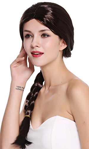 WIG ME UP - Per-P2 Parrucca Carnevale Donna Raperonzolo Lunga Castano Scuro Treccia Domestica Medioevo Pechmarie per-P2