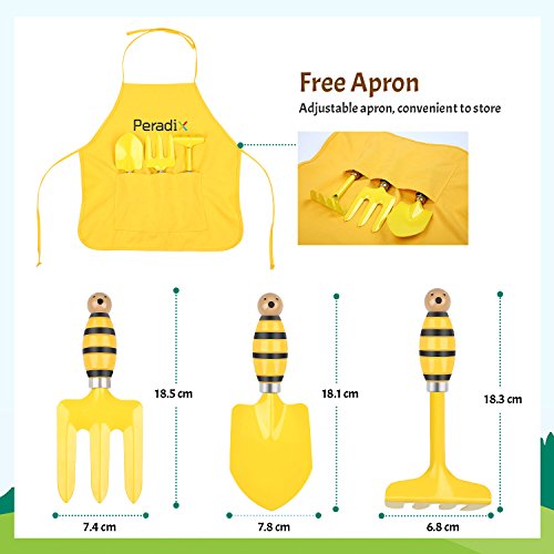 Peradix Set giardinaggio bambini in Ferro e Plastica Giochi da Giardino per Piantare Scavare con Grembiule