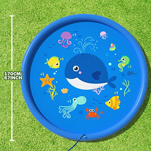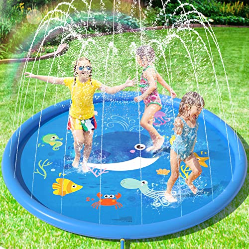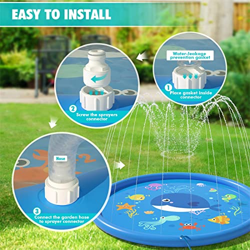 Peradix Gioco d'Acqua Tappeto per Bambini,Spray Spruzzi Giocattoli all'Aperto Giochi d'Acqua Sprinkler di Festa Splash Pad d'Acqua Giocattoli,Spray Estate per Bambini 3-12 Ragazzi e Ragazze (Blu)