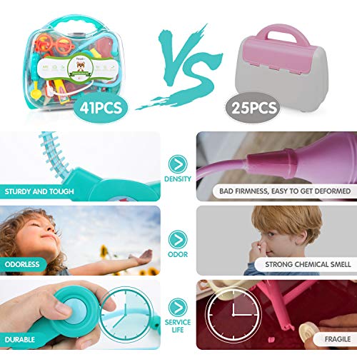 Peradix Kit Medico Giocattolo 41Pezzi Valigetta del Medico Costume da Dottore Infermiere Giocattolo Gioco di Ruolo, Dentista Imitazione per Bambini Stetoscopio con Luci e Suono