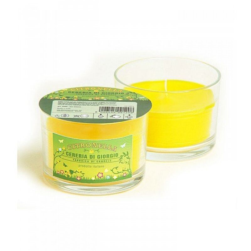 Citronella in bicchiere - Marca Cereria di Giorgio - Allontana zanzare ed insetti - Uso interno - Durata 3 ore circa - Made in Italy Citronella Cereria Di Giorgio in bicchiere di vetro ideale per allontanare zanzare ed insetti, per uso interno. Durata della citronella 3 ore circa. Dimensioni del bicchiere: diametro 7 cm, altezza 8 cm. Prodotto 100% naturale. Made in Italy.