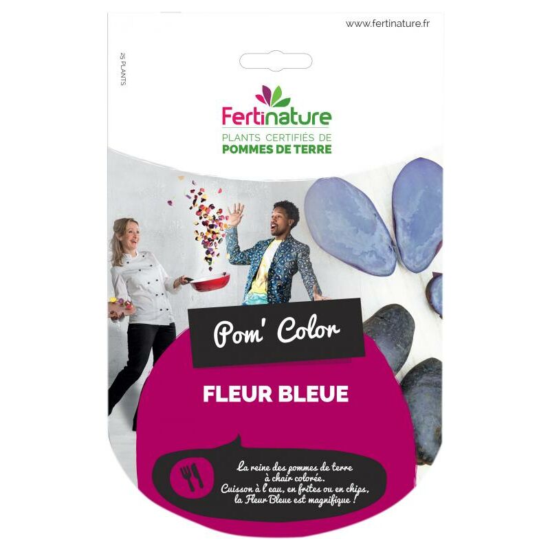 Patata fleur bleue, La regina delle patate a carne blu . Utilizzo in cucina: patatine, arrosto, al forno, al vapore, gratin, purè di patate, patatine fritte. Taglia tardiva. Mantiene il colore blu dopo la cottura.