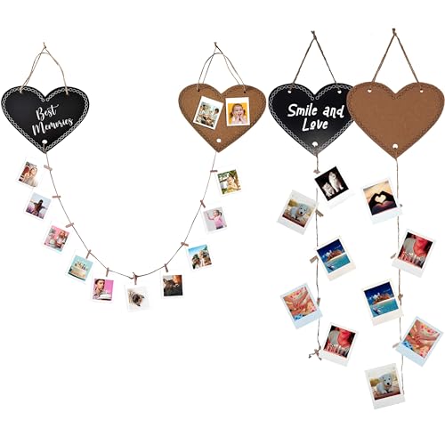 PERALMA Lovely Boards - Portafoto da Parete Multiplo Love, Bacheca a forma di Cuore, Cornice porta foto con spago, puntine e mollette, Idea originale come Regalo personalizzato