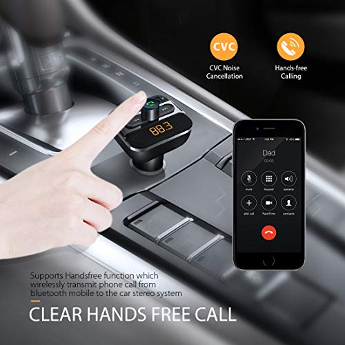 PERBEAT Trasmettitore FM per Auto Bluetooth Dotato di 2 Porte di Ricarica USB Controllo Musica e Vivavoce Compatibile con Smartphone Tablet PC Lettori MP3 Supporta Schede USB/Micro SD