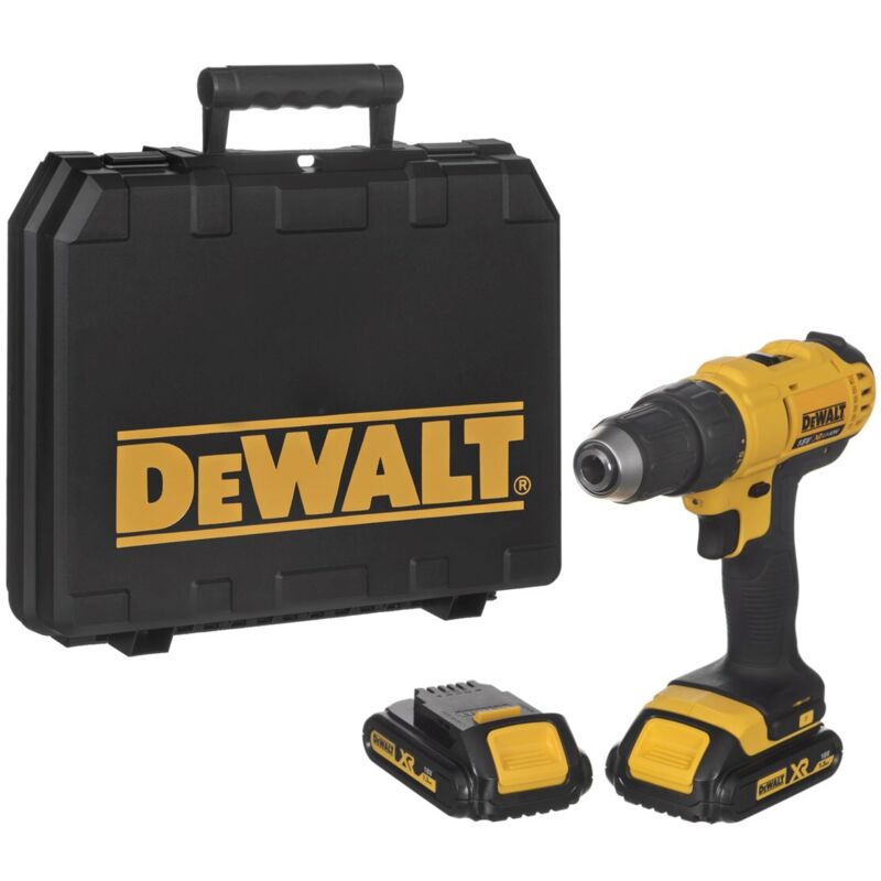 DeWalt - Trapano a batteria 18 V XR 2x1,3 Ah Li-Ion 13 mm 42 Nm con custodia I vantaggi di questo trapano avvitatore a batteria DeWalt sono: - Trapano avvitatore 18V con tecnologia XR e 2 batterie da 1,3Ah - Mandrino da 13 mm - 2 impostazioni di velocità, velocità variabile e inversione per il massimo controllo - Efficiente trigger intelligente per un controllo totale in tutte le applicazioni - 16 impostazioni di coppia per la massima precisione - Luce LED per una migliore visibilità - Design ergonomico e impugnatura in gomma per migliorare il comfort dell'utente - Caricabatterie multitensione incluso - Parte della piattaforma intelligente XR Li-Ion, progettata per fornire un'efficienza ancora maggiore e accelerare il lavoro. DeWalt Battery Driver Drill Specifiche: Tipo di batteria: Li-ion Tensione: 18 volt Capacità della batteria: 1,3 Ah Coppia massima: 42 Nm Potenza in uscita: 300 Watts Velocità a vuoto: 0-450/1500 rpm Capacità del mandrino: 1,5-13 mm Capacità massima di foratura