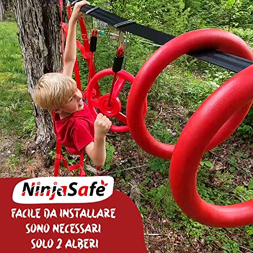 INSTALLAZIONE SENZA STRESS: Il nostro percorso ninja può essere installato rapidamente! Sono sufficienti 2 alberi distanti tra loro da 20 a 45' e il nostro manuale di istruzioni vi guiderà