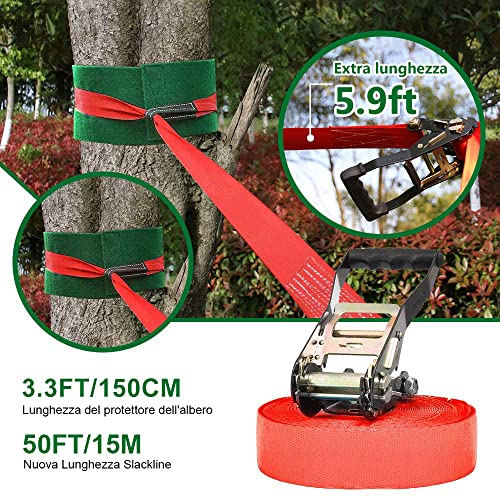 Percorso ad ostacoli Ninja Warrior per bambini - 15 metri di doppia slackline con 10 accessori più completi per bambini, altalena, trapezio, scala di corda,1,2 metri di allenamento delle braccia
