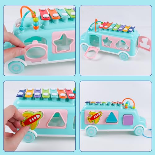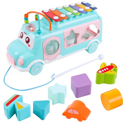Percussioni Per Bambini, Giochi Musicali con Blocchi da 7 Pezzi di Forme Geometriche Diverse, Regalo di Giocattoli Educativi Montessori a Tema Autobus per Bambino 2 3 4 5 Anni