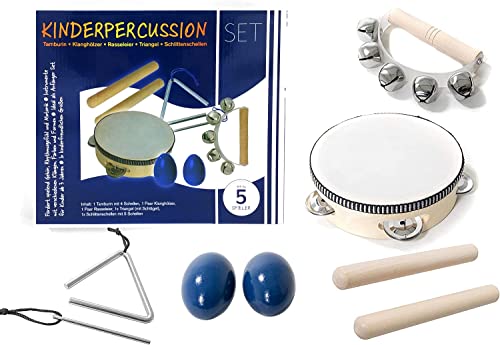 Set di percussioni per bambini, 8 pezzi in legno. Set composto da tamburello, triangolo, Egg-Shaker ecc. - per l'educazione musicale