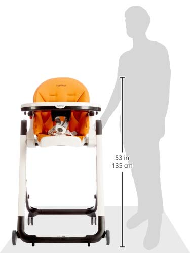 Peg Perego Siesta Follow Me Seggiolone Pappa Neonati Pratico, Reclinabile, Funzione Sdraietta, 4 ruote, Pieghevole, Design italiano per Bambini da 0 a 3 Anni (0-15 kg), Arancia