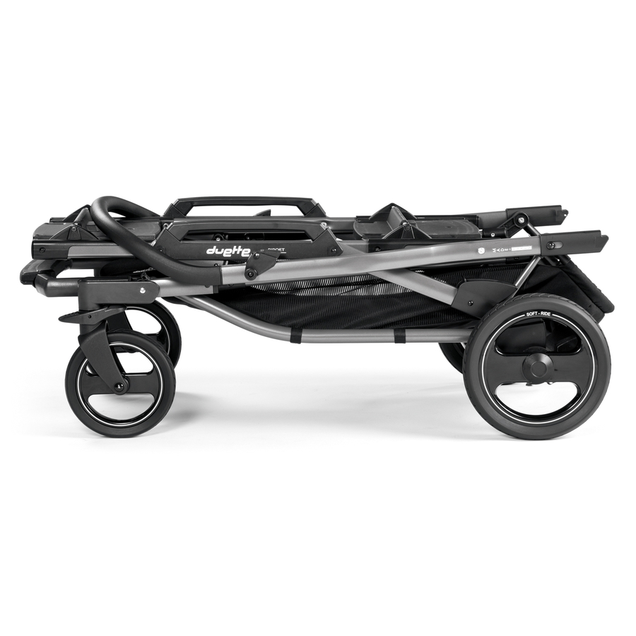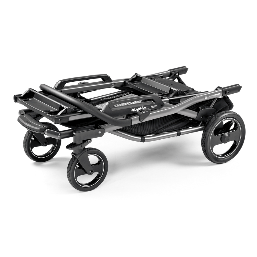 Il maneggevole passeggino gemellare (o per fratellini vicini d'età) di Peg Perego offre il massimo comfort di guida per un massimo di due neonati o bambini e anche per i loro genitori. Il passeggino è adatto dalla nascita a circa 36 mesi e offre diverse configurazioni grazie ai vari accessori di Peg Perego. Due sedute possono essere attaccate al telaio senza sforzo con un solo clic. E possono essere combinate a seconda dell'età dei bambini e dei bisogni dei genitori. Il telaio ha una larghezza inferiore a 60 cm, quindi molto minore rispetto ad altri passeggini gemellari, in modo che gli spazi stretti possano essere superati facilmente. Le ruote piroettanti permettono di guidare il passeggino senza sforzo anche con un peso totale relativamente alto con due bambini a bordo. Le quattro grandi ruote a camera d'aria soft-ride con sospensione e cuscinetti a sfera assicurano una guida confortevole. Se necessario, le ruote possono essere bloccate in modo che il passeggino possa essere manovrato in sicurezza anche su strade irregolari. Il telaio può essere ripiegato in modo compatto, mantenendo montate le sedute sportive. Questo permette di chiuderlo e riaprirlo rapidamente. Le maniglie laterali rendono facile il trasporto, ad esempio su e giù per le scale. Il freno di stazionamento a due lati sulle ruote posteriori assicura che il passeggino stia in piedi in modo sicuro. Se necessario, le ruote possono essere rimosse per facilitare lo stivaggio nel bagagliaio. Il Duette Piroet ha un grande cesto in rete che si ripiega con il telaio. Dettagli del prodotto: Cintura a 5 punti Possibilità di abbassare lo schienale in posizione nanna Grande cesto in rete Freno di stazionamento su entrambe le ruote posteriori Maniglie di trasporto laterali sul telaio Ruote bloccabili Grandi ruote a camera d'aria soft-ride Cappottina con protezione solare 50+ Dettagli tecnici: Larghezza del sedile: 33 cm Lunghezza del sedile: 22 cm Lunghezza dello schienale: 48 cm Peso seduta passeggino: 2,8 kg Pe