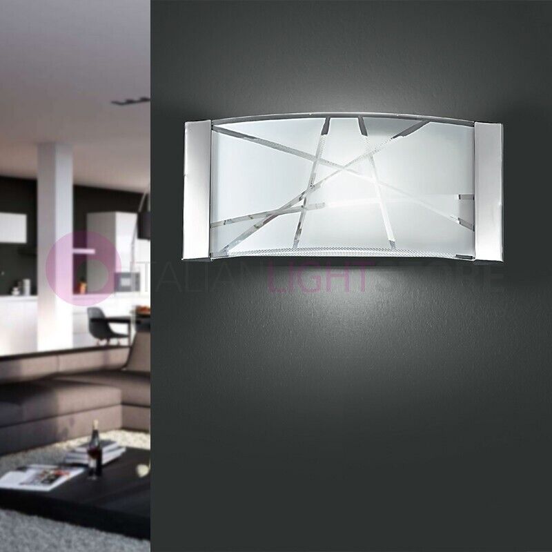 Collezione Fish LA LAMPADA CHE TI FA SOGNARE Applique con montatura in metallo finitura cromo lucido e vetro bianco con incisioni trasparenti e particolari satinati.. Il vetro decorato crea un effetto luminoso unico e suggestivo. La fonte di luce interna si diffonde attraverso il vetro, illuminando l'ambiente circostante in modo delicato ed elegante. L'applique è perfetta per arricchire l'arredamento di ambienti come soggiorni, sale d'attesa o studi professionali, dove è richiesta una luce soffusa ma allo stesso tempo d'effetto.