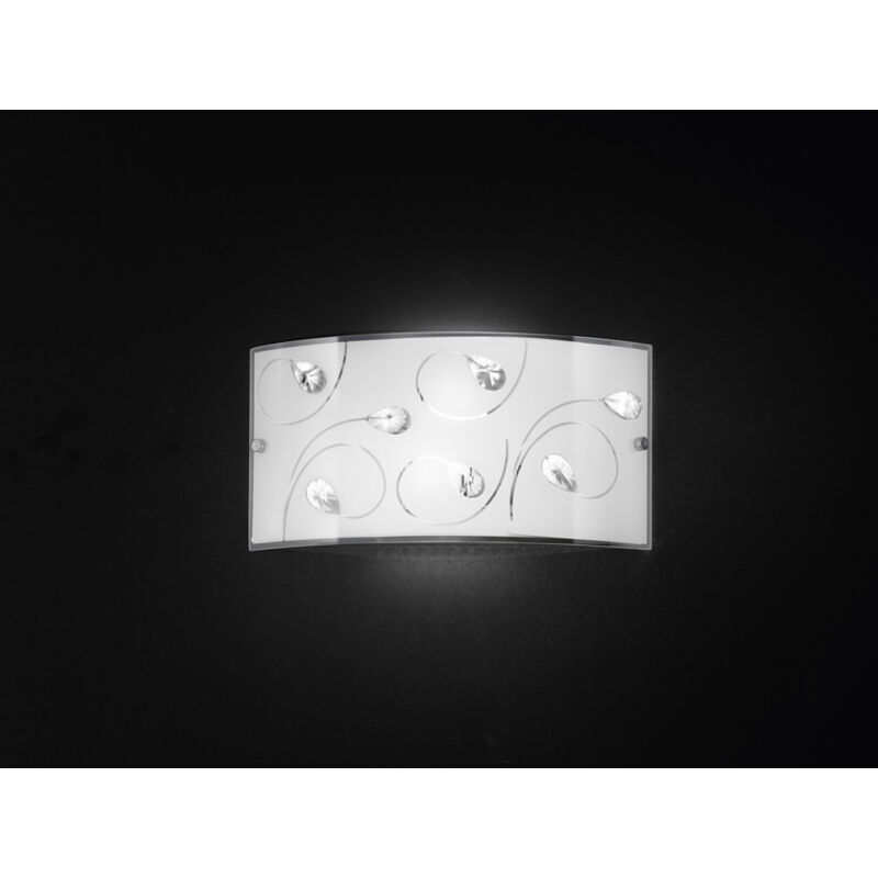 Collezione Drop APPLIQUE DAL DESIGN RAFFINATO Applique struttura in vetro trasparente ed inserti di cristalli trasparenti, che creano riflessi luminosi unici e creano un'atmosfera accogliente e sofisticata.. Grazie al suo design elegante e raffinato, si adatta perfettamente a qualsiasi tipo di arredamento, sia moderno che classico, e può essere utilizzato in molteplici contesti, come ad esempio in soggiorni, camere da letto o ambienti di accoglienza.