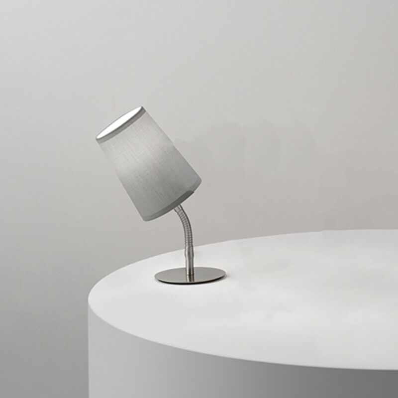 Collezione Mash LA LAMPADA CHE SI PIEGA ALLE TUE ESIGENZE Lampada da tavolo è realizzata in metallo verniciato di colore cromo spazzolato.. Il design semplice ed essenziale, ma al contempo moderno ed elegante, fa sì che questa lampada si adatti perfettamente a qualsiasi tipo di arredamento. La particolarità di questa lampada è la sua flessibilità, grazie alla possibilità di orientare il paralume in diverse direzioni per una luce più mirata e personalizzata. La luce emessa è calda e diffusa, ideale per creare un'atmosfera accogliente in qualsiasi stanza della casa.