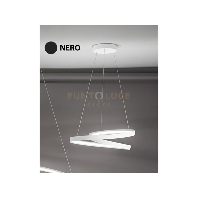 Lampadario sospeso in metallo e alluminio verniciato a polveri con diffusore in silicone e cavi regolabili in lunghezza.