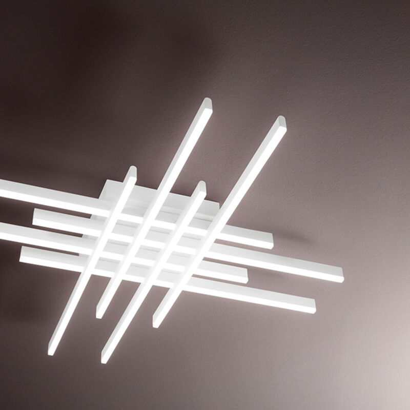 Collezione Laser LA LUCE CHE TAGLIA LO SPAZIO Plafoniera realizzata interamente in alluminio verniciato di colore bianco ed è caratterizzata da un design moderno ed elegante.. La plafoniera è dotata di tecnologia LED, che garantisce una lunga durata e un'ottima resa luminosa. Grazie alle sue dimensioni compatte, la plafoniera è adatta ad essere installata in diversi ambienti, sia domestici che professionali. La plafoniera è facile da installare e viene venduta completa di istruzioni per l'uso.