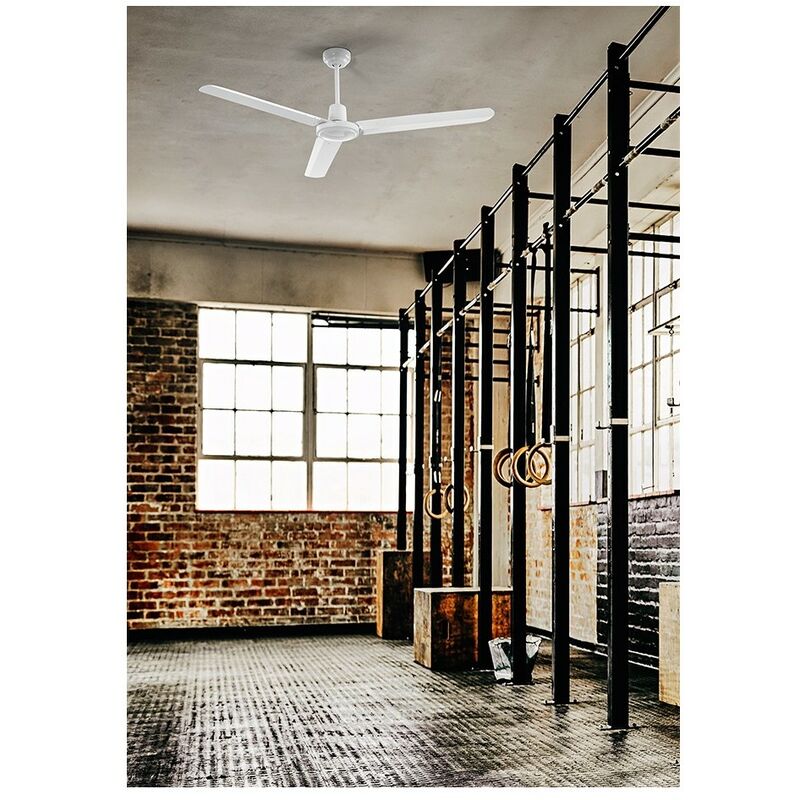 Ventilatore da soffitto in metallo verniciato bianco lucido con 3 pale in metallo bianco e 3 velocità. Ventilatore da soffitto di design, molto elegante con telecomando a onde radio incluso. Questo ventilatore da soffitto dispone dell'ultima tecnologia con un motore AC, molto più silenzioso, con un consumo inferiore rispetto ai normali ventilatori e molto più stabile. Ventilatore da soffitto ideale da applicare in tutti gli ambienti residenziali come saloni, camere da letto o uffici. Molto richiesto anche per studi professionali, showroom e negozi. Questo prodotto si utilizza molto nelle abitazione grazie al suo design moderno e all'ultima tecnologia del motore AC, molto apprezzato nelle camere da letto. Perfetto per essere abbinato ad ambiente con legno. Materiale: Metallo verniciato bianco lucido . 3 velocità disponibili, alla velocità massima arriva a 275 giri al minuto. Questo ventilatore da soffitto dispone della funzione estate-inverno, quindi potrà essere utilizzato anche nella