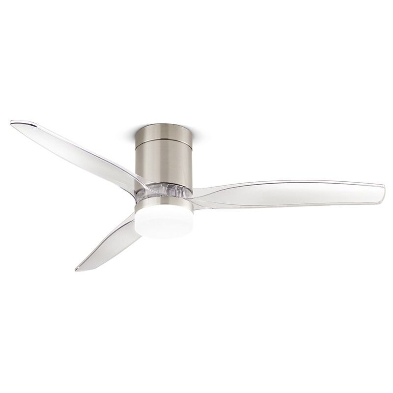 Collezione Kuma SOFFI DI LUCE Ventilatore in metallo cromo spazzolato. 3 pale in acrilico trasparente. Diffusore in acrilico satinato. Led 18W 1720Lm H.31 x D.132 cm Telecomando incluso. Soffi di luce è il nome che abbiamo dato al nuovo catalogo ventilatori 2024. Si tratta di una collezione ulteriormente ampliata che non solo risponde ad un pubblico sempre più eterogeneo ma che vuole tenere insieme due categorie: classicità e contemporaneità. I nuovi modelli con motore a risparmio energetico DC a corrente continua utilizzano meno energia di un ventilatore da soffitto a corrente alternata e producono un maggior flusso d'aria grazie al telecomando a 5 velocità incluso.