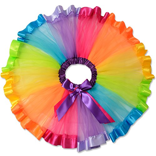 Perfashion - Gonna a balze da bambina ad arcobaleno, tutù in tulle, con fiocco