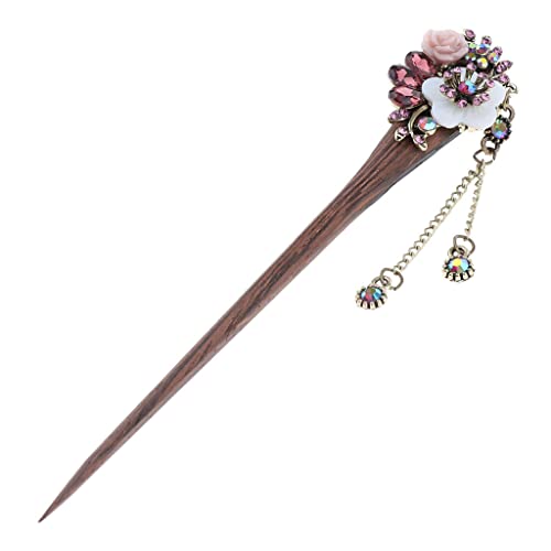 Perfeclan Bastone per Capelli con Ciondolo in Legno Clip Bacchette Fiore Cinese Forcina Chignon Spilla Nappa Ciondolo Decor per Hanfu, Cosplay, Film, Foto, Matr - Viola