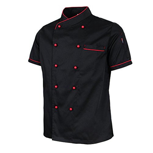 Perfeclan Hotel Chef di Cucina Uniforme Manica Corta Giacca Camicia Fibbia a Doppio Petto Cameriere Cuoco Vestiti - Nero, 2XL
