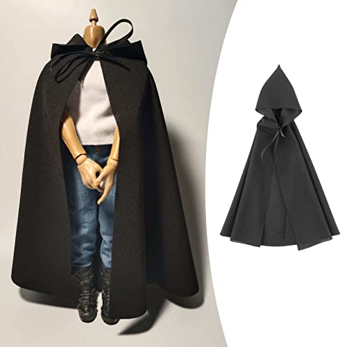 Mantello con cappuccio con mantello da soldato nero 1: 6 per bambola da 12 pollici con corpo maschile femminile.