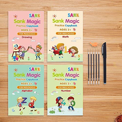 4 x quaderno per scrittura a mano (1 pcalphabet + 1 foto + 1 lettera + 1 numeri) e 1 penna per dissolvenza automatica (1 portapenne + 1 astuccio + 8 ricarice).