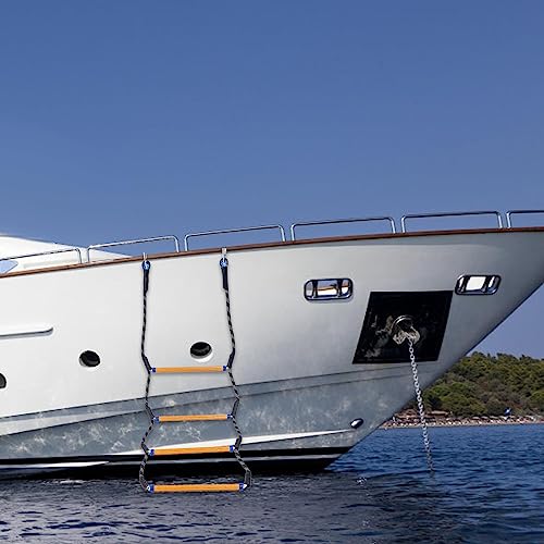 【MATERIALE PREMIUM】: scala di corda per barche realizzata con materiali in poliestere resistente, cuciture rinforzate, con una resistenza di 150 kg, resistente all'usura, robusta e durevole. Questa robusta scala per barche è perfetta per bambini e adulti.