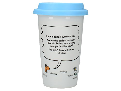 MR MEN Mr Perfect DOUBLE WALLED PORCELAIN Take Away TRAVEL MUG + Silicone Lid