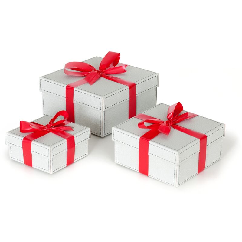 LAVATELLI Perfect Set 3 Scatole Regalo Set con 3 scatole regalo in cartone. Inclusi nella confezione foglio di carta velina 100 x 140cm e nastro rosso di lunghezza 5,5m da tagliare in 3 segmenti: 147+187+216 cm Scatole resistenti, con coperchio, ideali per regali di varie misure, eleganti ed adatte a varie occasioni: Natale, Compleanno, Anniversario, San Valentino, Laurea, Pensione, Baby shower Ogni scatola regalo è facile da assemblare con sistema di montaggio estremamente semplice, intuitivo e veloce, senza bottoni. Le scatole Perfect. sono riutilizzabili per contenere piccoli oggetti di uso quotidiano, bigiotteria e gioielli, ricordi, giocattoli, cancelleria ed altro ancora. Nel set ci sono 3 scatole con 3 differenti misure: 24x24 h12 cm / 20x20 h10 cm / 15x15 h8 cm Caratteristiche tecniche Accessori in Dotazione