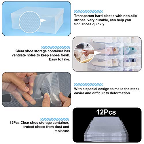 PERFETSELL 12 Pz Scatole per Scarpe Spesse Scatole Portascarpe Impilabili Scatole Trasparenti per Scarpe Contenitori per Scarpe Organizzatore Scarpe Box per Scarpe Pieghevoli 27,5 x 18.5 x 9,5 cm
