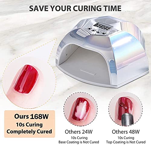 42 pezzi di tecnologia LED a doppia tecnologia: la lampada UV LED per unghie ha 168 W Super Power, la lampada UV LED da 54 W offre caratteristiche uniche e rapide, molto efficienti dal punto di vista energetico - Sensore auto per un comodo smalto gel di esposizione. Funzioni multifunzione e protezione della mano: le luci UV LED dispongono di un sensore automatico di accensione e spegnimento (senza interruttore).