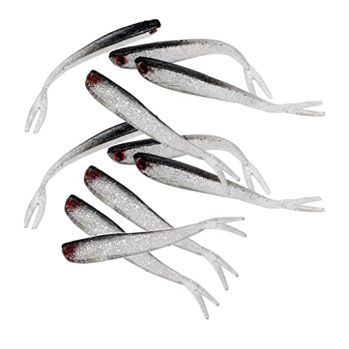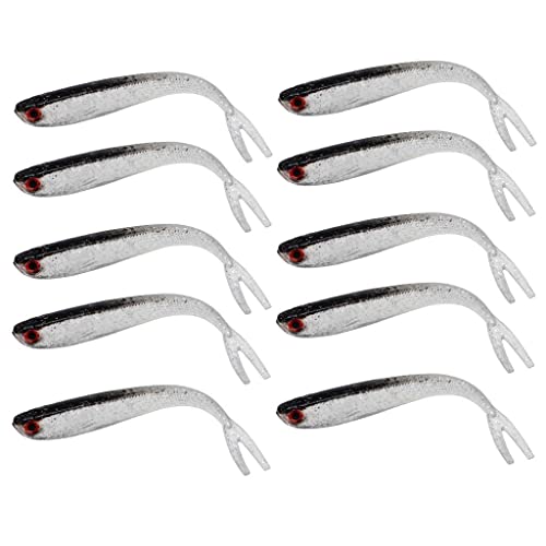 Perfk 10pcs Swimbaits, Soft Jerk Baits, Soft Fishing - 3D Eyes, Split Tail, 10 Centimetri