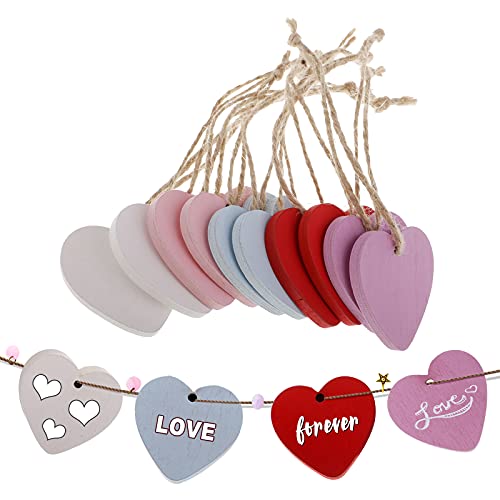Perfk 10 Pezzi 40x40mm Legno Cuore Forme Shabby Chic Legno Abbellimento Scrapbooking Artigianato Fai da Te Campanelli Eolici Appesi Tag Decorazioni del Partito di Nozze - Misto